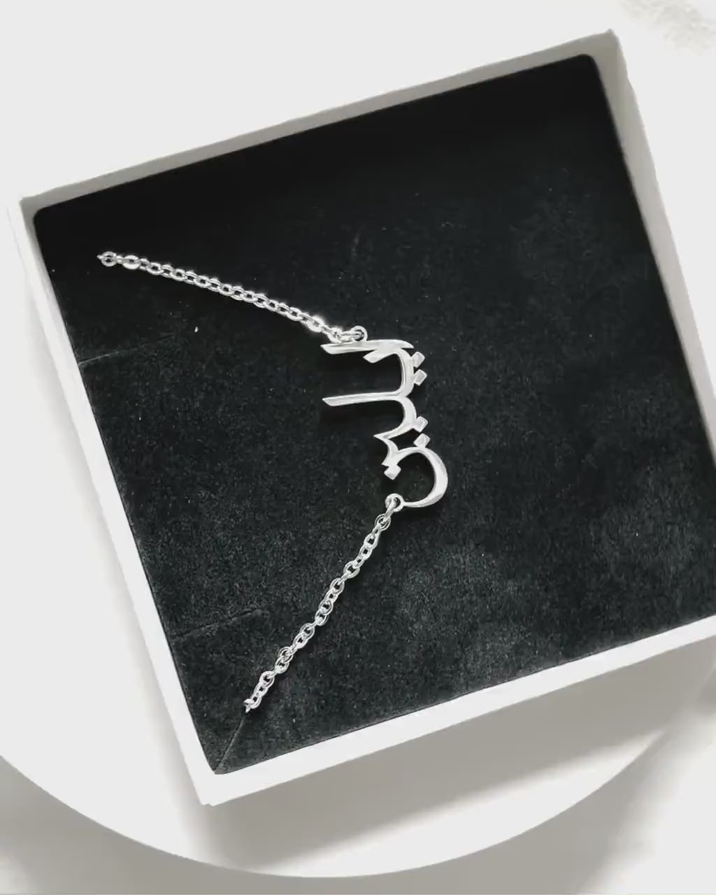Create a timeless and meaningful accessory with our Personalised Arabic Name Necklace. Expertly crafted from dainty sterling silver, this custom Arabic calligraphy necklace is designed to add a touch of elegance and individuality to your jewellery collection.