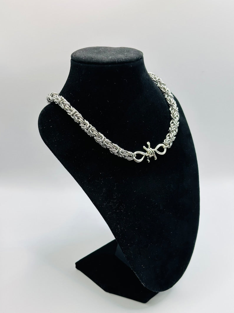 Zan Jewellery Stainless Steel Barbed Wire Byzantine Chainmail Necklace – Handcrafted Statement Piece