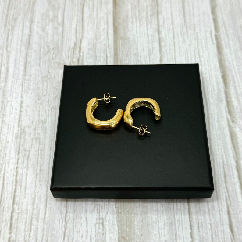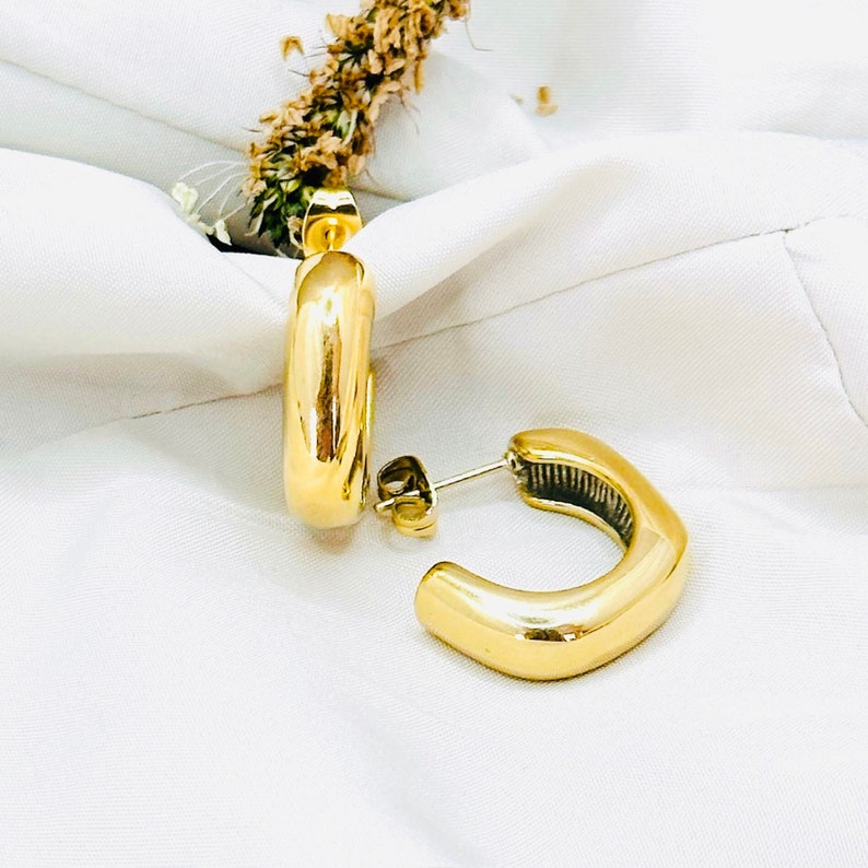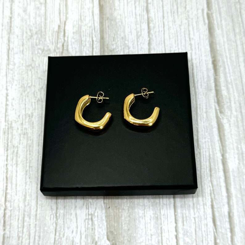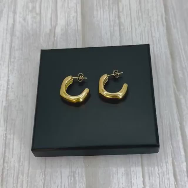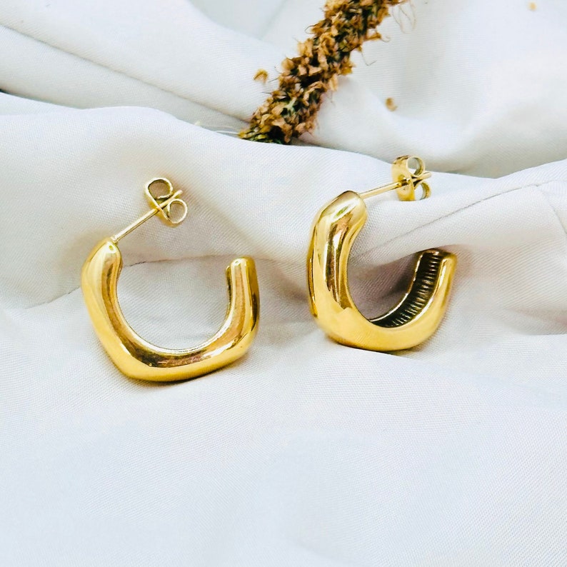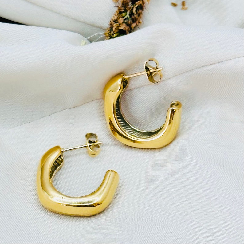 Elevate your style with our stunning gold chunky hoop earrings, designed to add a touch of elegance and sophistication to any outfit. These modern half-hoop stud earrings are perfect for daily wear or special occasions, making them an essential addition to your jewellery collection.