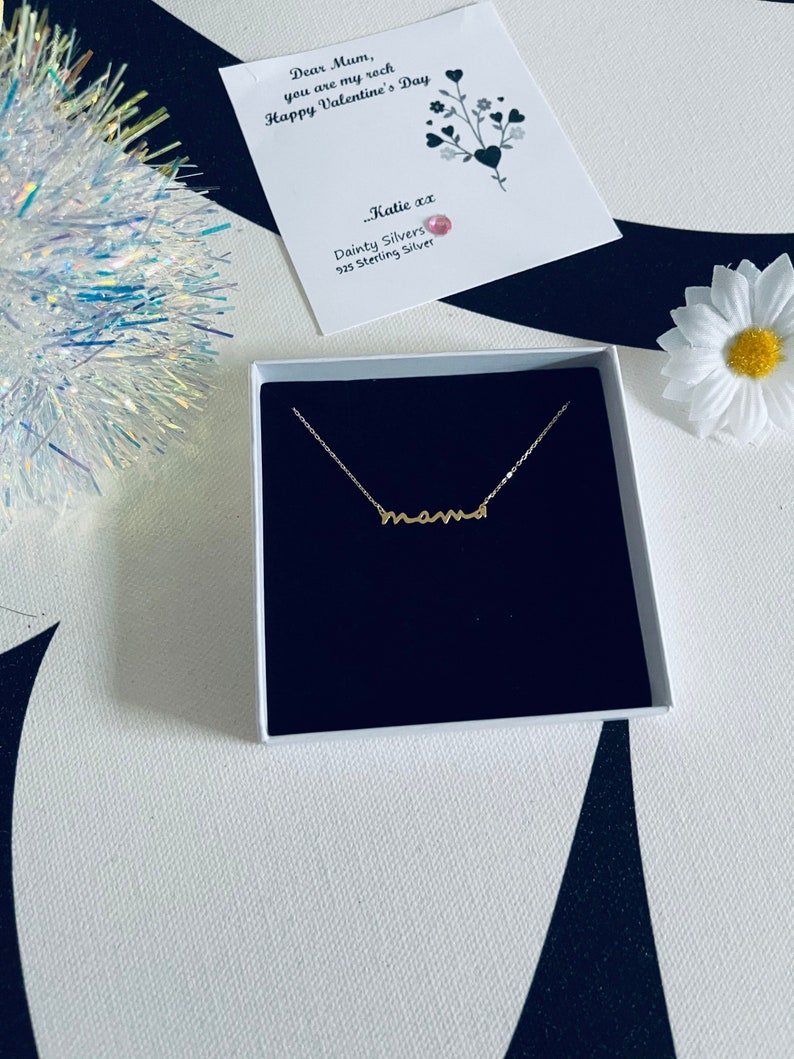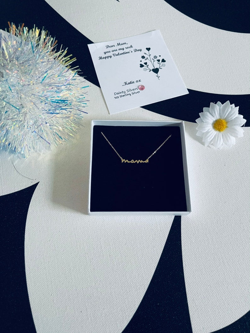 Celebrate motherhood with our Mama Silver Name Necklace, a beautifully crafted piece that symbolises love, strength, and family. Made from 925 Sterling Silver, this elegant necklace features a delicate "Mama" pendant on a fine chain, making it the perfect sentimental accessory for mums everywhere. Designed for everyday wear, this necklace adds a touch of elegance while holding deep personal meaning.