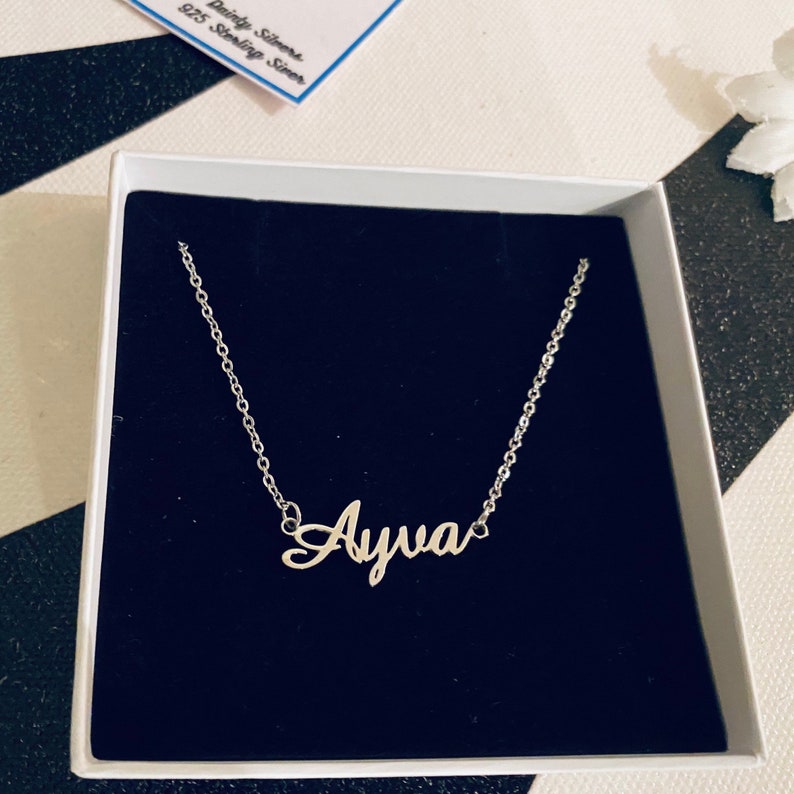 Add a personal touch to your jewellery collection with our custom name necklace, beautifully crafted in sterling silver. Whether you want your own name, a meaningful word, or a special gift for a loved one, this dainty name necklace is the perfect way to express individuality and style.