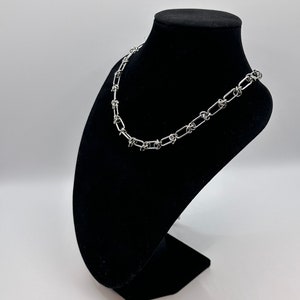 This stunning barbed wire knot chain choker is a must-have statement piece, perfect for daily wear and layering. Designed for both men and women, it adds an edgy, modern touch to any outfit. Crafted from premium stainless steel, it is hypoallergenic, tarnish-resistant, and durable for long-lasting shine and comfort.