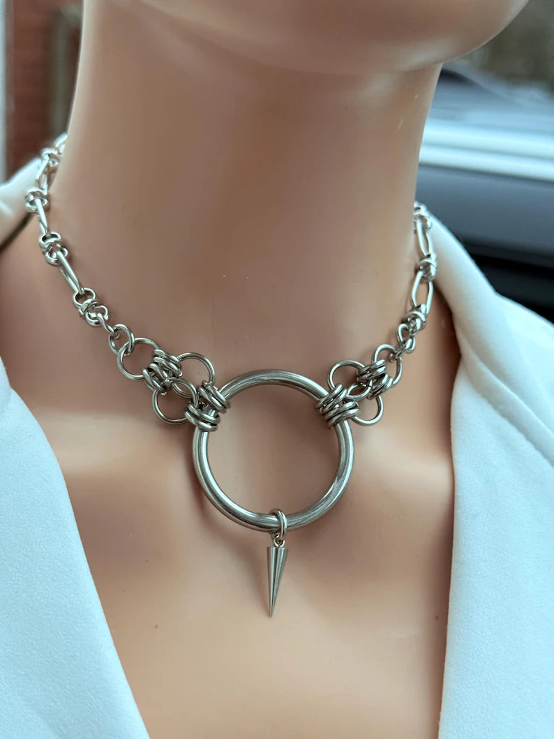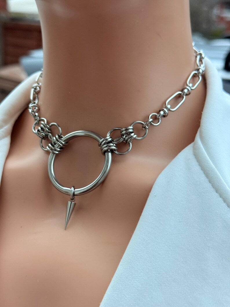 O-Ring Spike Choker Chain Necklace