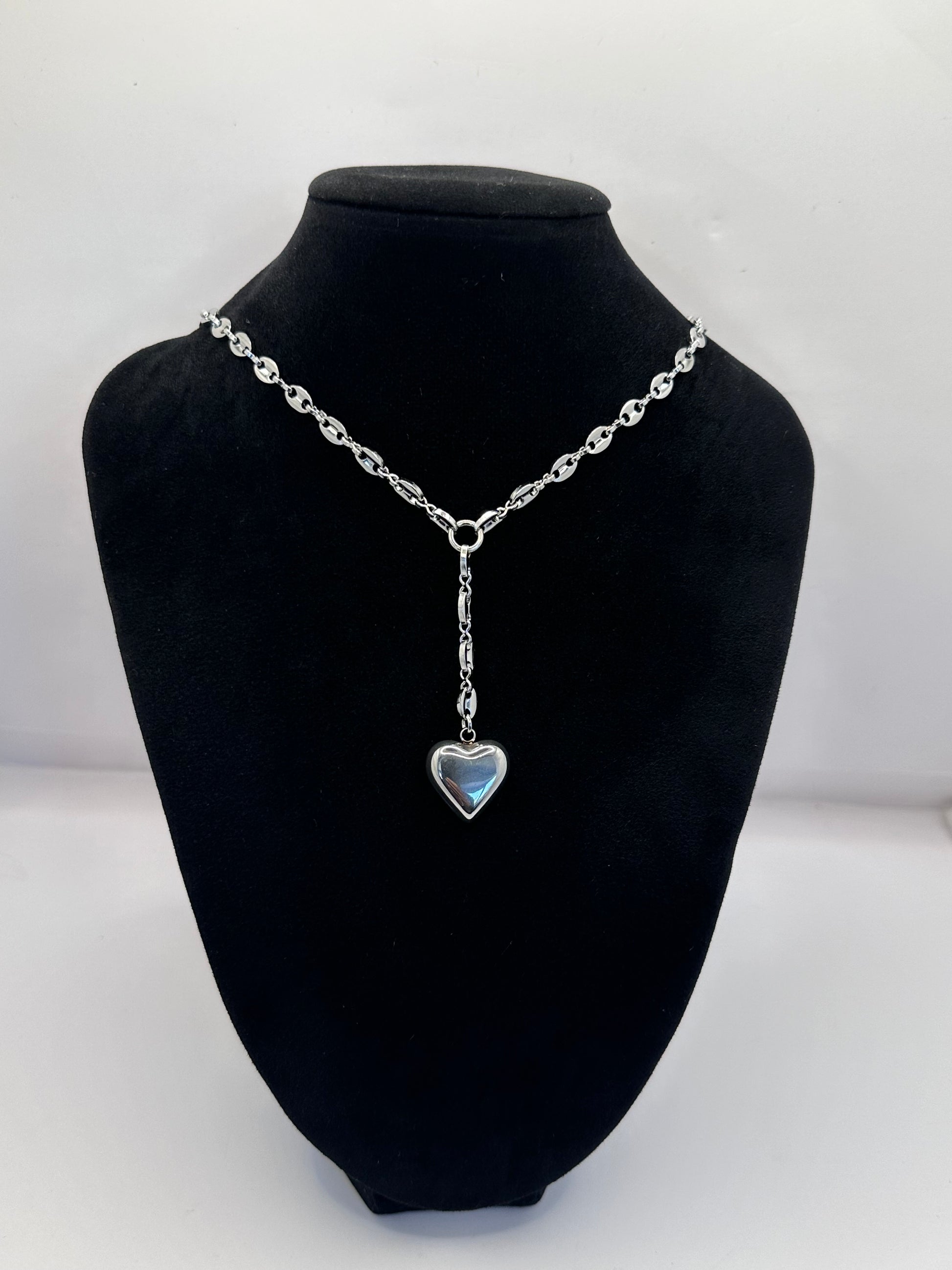 Dangling Heart & Coffee Bean Lariat Necklace – Sterling Silver