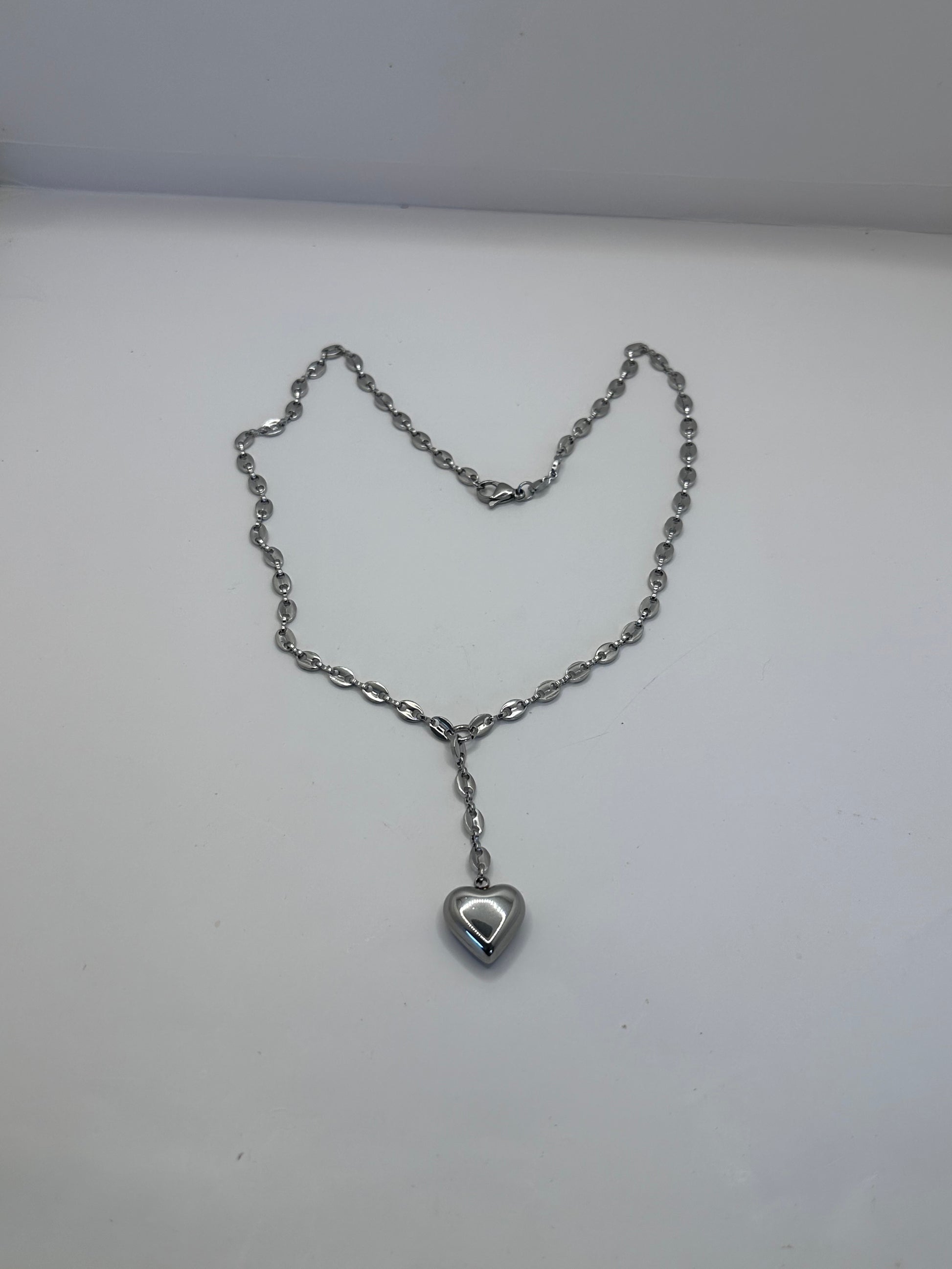 Dangling Heart Coffee Beans Lariat Silver Necklace